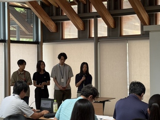 午後1時から、丹波山村役場で中間プレゼンが行われました。4班それぞれがテーマを設定し、発表しました。協力事業者や行政職員、村長から激励の意味を込め、様々な意見や質問を行いました。厳しい指摘もあり、複雑な思いを抱いた班もあったかと思いますが、最終プレゼンに向け奮起いただくことを期待します。